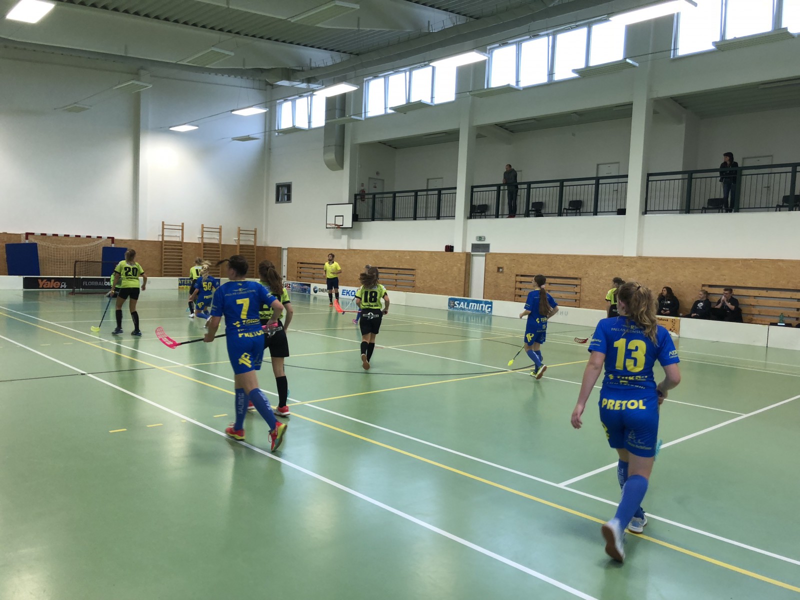 Jedním slovem nádhera. Líp se to vystihnout nedá. Daří se mi v přípravě před zápasem zvyšovat tempo a holky jdou do zápasu perfektně připravené. Rázem vedeme 3:0, hrajeme klidně a s rozvahou a soupeř se na nás marně snaží něco vymyslet. V první třetině snad ani nevystřelí na naši branku a ani v těch dalších mu toho holky moc nedovolují. Holky naprosto kontrolují zápas, hrají, co mají a zónová obrana funguje úžasně. Vítězíme zaslouženě 5:0, Štěpka má první nulu sezóny a tak nám kalí radost jedině zranění Bety, kdy po jednom souboji dostala loktem do zad. Musím zde vyzdvihnout vynikající přístup zdravotnice, která po prohlídce Bety nakládá a odváží radši na kontrolu do nemocnice. Vše dobře dopadlo, jsou to „jenom“ naražená žebra. Kdo to někdy měl, tak ví jaká je to bolest, ale za týden je Bety zpátky ve hře.