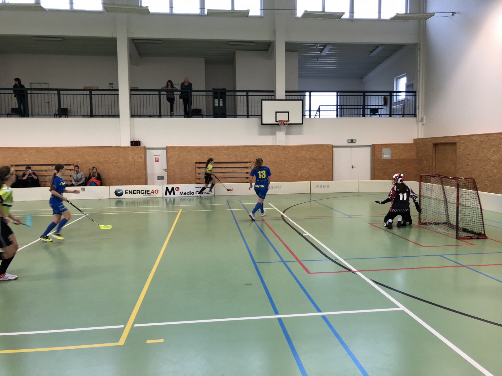 Poslední tým tabulky, prohrál chvíli před námi se Štírkami ČB 1:12, ale mě to neuklidňuje. Proti tomuto soupeři se nám hrálo vždy těžce. A bohužel ani tentokrát to nebyla vyjímka. Marně holky upozorňuji, aby hrály svoji hru. Po prvním našem gólu na ně sedá díky předchozím vítezstvím pocit neporazitelnosti a přestávají hrát, co mají. Otevírají zónu a ve druhé třetině se soupeř dostává do nebezpečných šancí. A v této chvíli vyniká naše opora v brance – Štěpka. Klidně a s přehledem likviduje šance soupeře a do přestávky před poslední třetinou díky ní vstupujeme pořád za stavu 1:0 pro nás. O přestávce to holkám naservíruji natvrdo, jsem hodně kritický a otevřený a snažím se je vrátit zpátky na zem. První dvě minuty začínám zoufat, že se mi to nepovedlo, ale pak už hra vypadá jak má. Soupeř se nestačí otáčet a míček mu prakticky nepůjčíme, a když jo, tak z toho není nic nebezpečného. Dáváme další dva góly, trefujeme tyčky a jdeme si pro další vítězství. Vítězíme 3:0, ale lehké to nebylo.