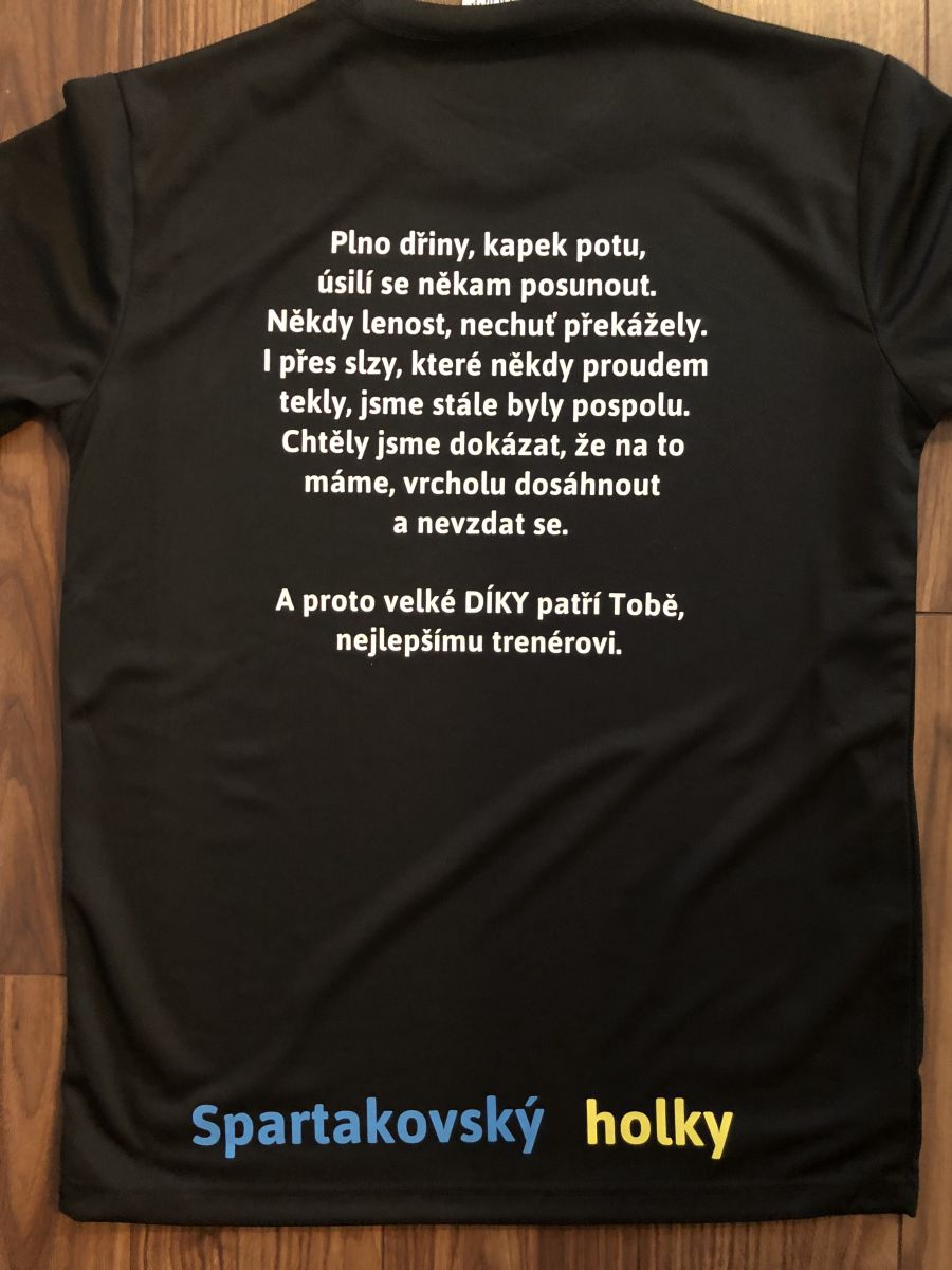 Než začnu psát, musím napsat o něčem, co turnajem velice úzce souviselo a stalo se večer před turnajem. Během první přestávky zápasu Mužů A došlo k slavnostnímu předání medailí starším žákyním za jejich vítězství v Lize starších žákyň. Většina asi ví, ale pro jistotu, starší žákyně jsou ty samé holky, co hrají za dorostenky. Prostě hrají o kategorii víš, než kam patří. Ale to není podstatné. Podstatné je, že mi při této příležitosti předali dárek v modrožluté krabici. A uvnitř bylo tričko s neuvěřitelnými slovy.