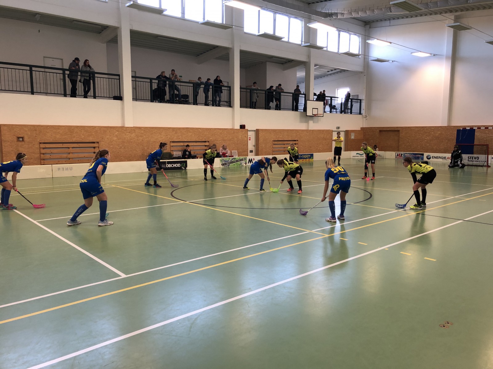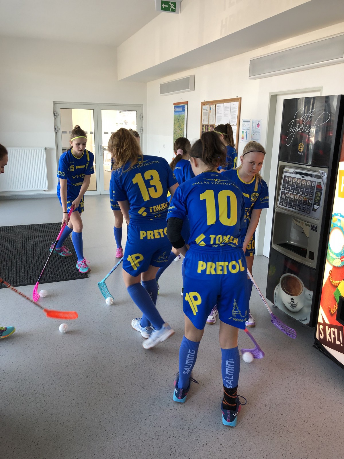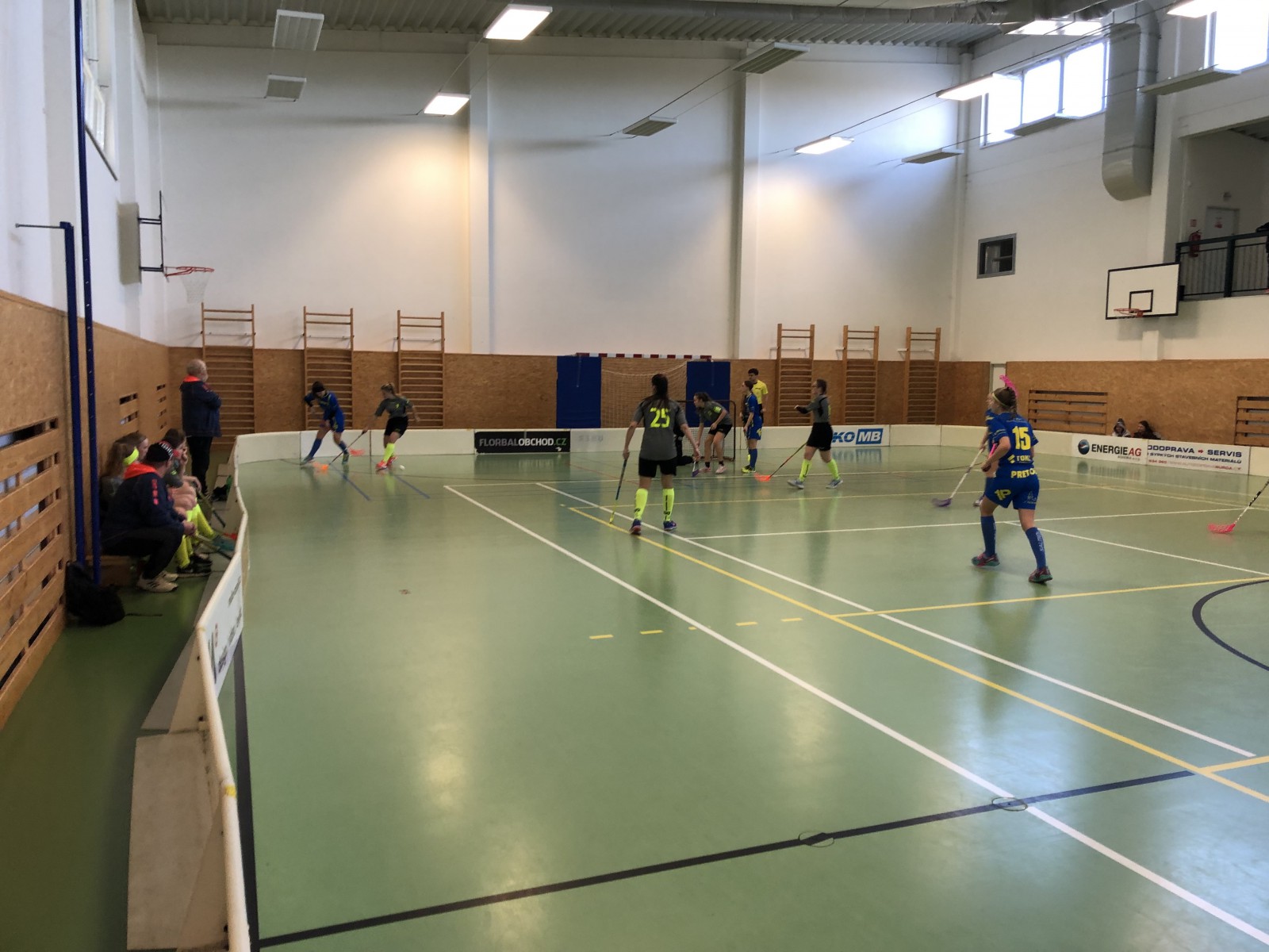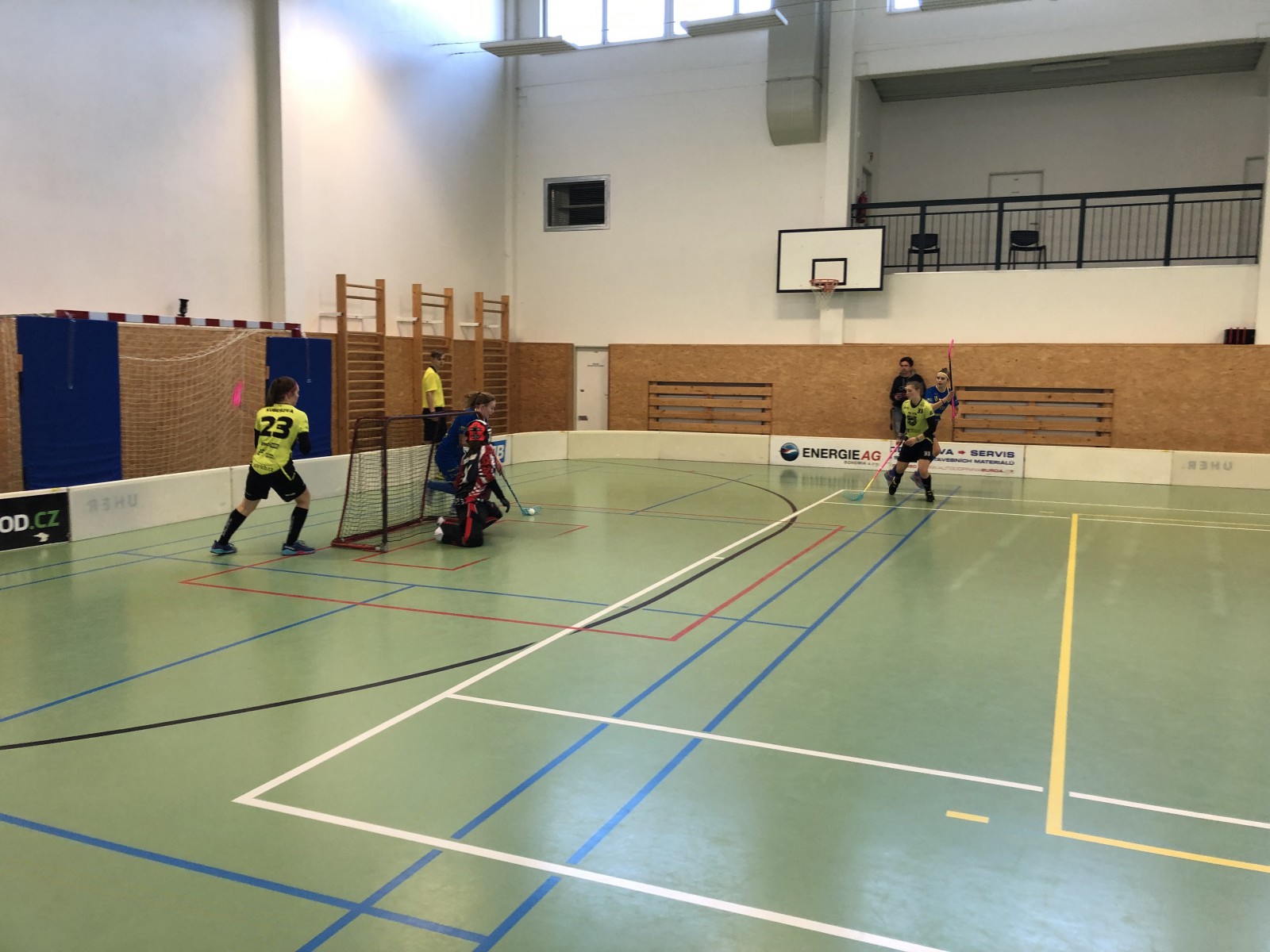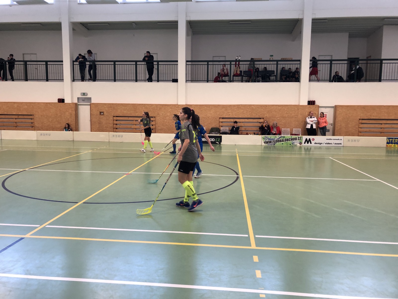 Dle počtu a dovolím si říct i věkové skladby hráček to měl být předem rozhodnutý zápas. Nicméně zápas to byl opět vyrovnaný, jen nás zle potrápila produktivita. Díky tomu jsme v úvodu druhé třetiny prohrávali 1:3, ale pak přišel velký obrat na 4:3. Na začátku třetí třetiny přišel rozhodující moment utkání. Pro trojnásobném faulu soupeře (tři sekery v řadě) na Sáru soupeř získal míč a vstřelil gól. Reakci rozhodčího nechám na konec článku. Pak hra pokračovala naprosto vyrovnaně, ale štěstí opět nebylo na naší straně, když 16 vteřin před koncem soupeř dal rozhodující gól. Opět jsme prohrály nejtěsneji o jeden gól po velmi bojovném a houževnatém výkonu. Konečný výsledek 4:5.
