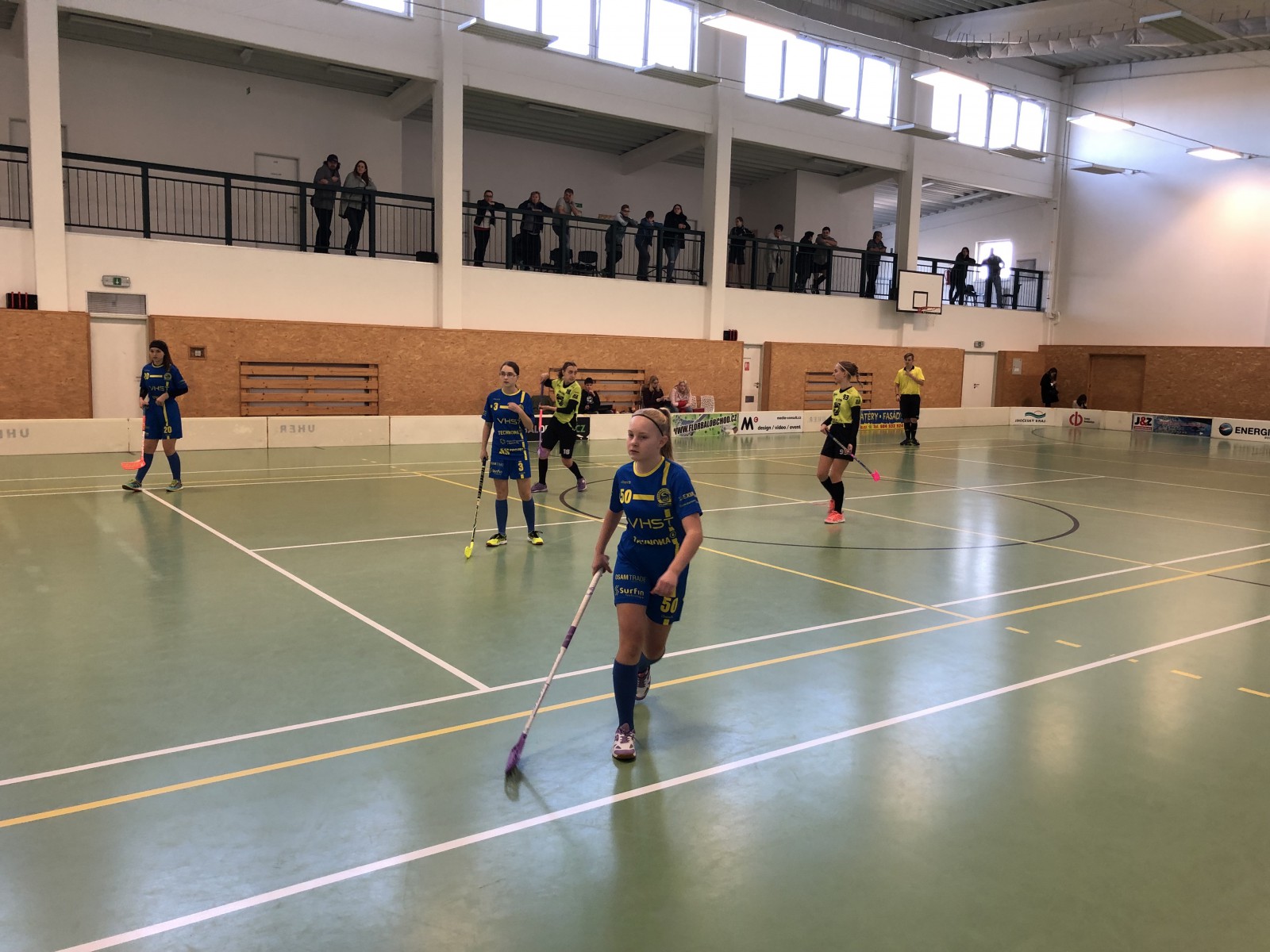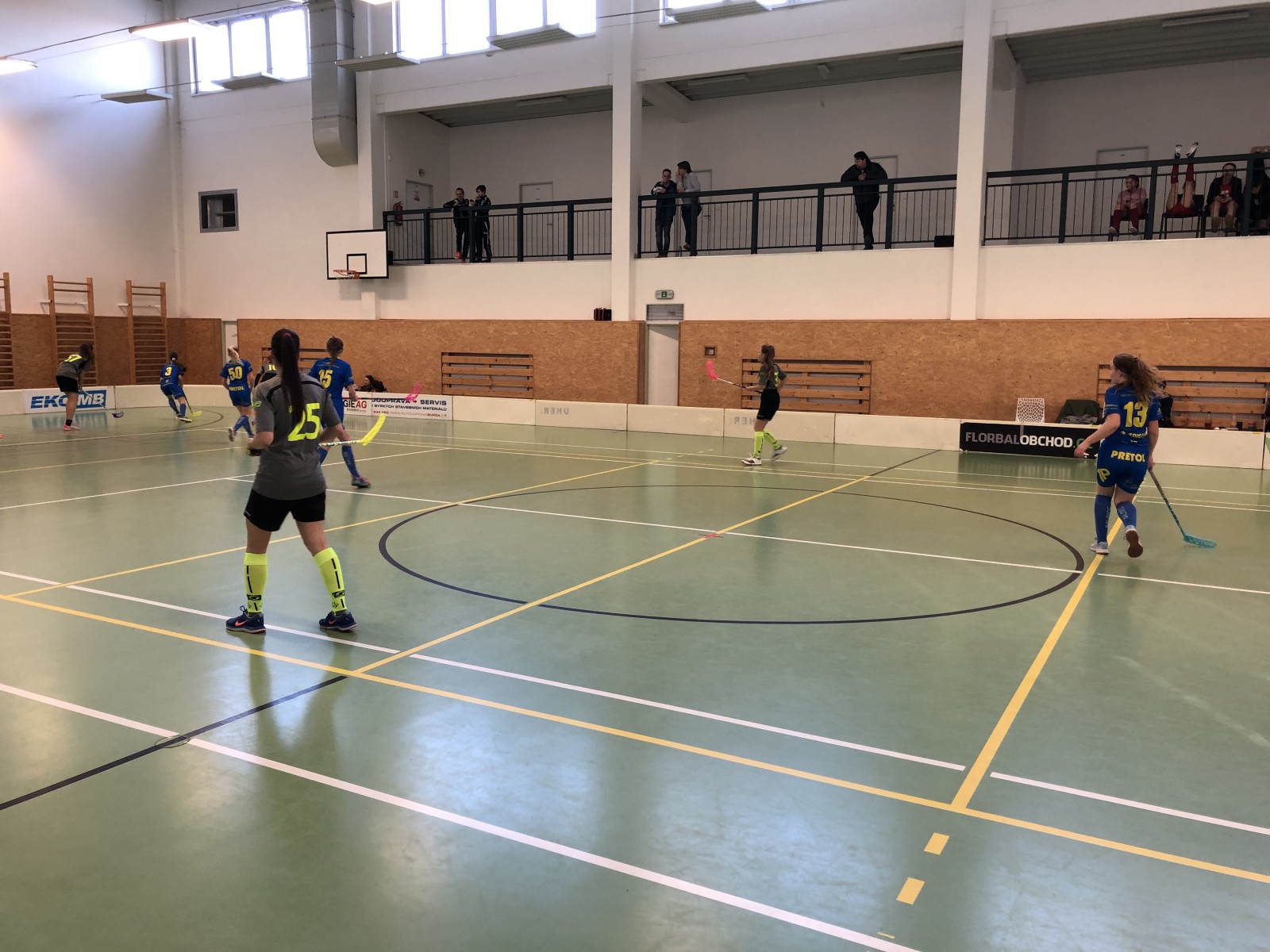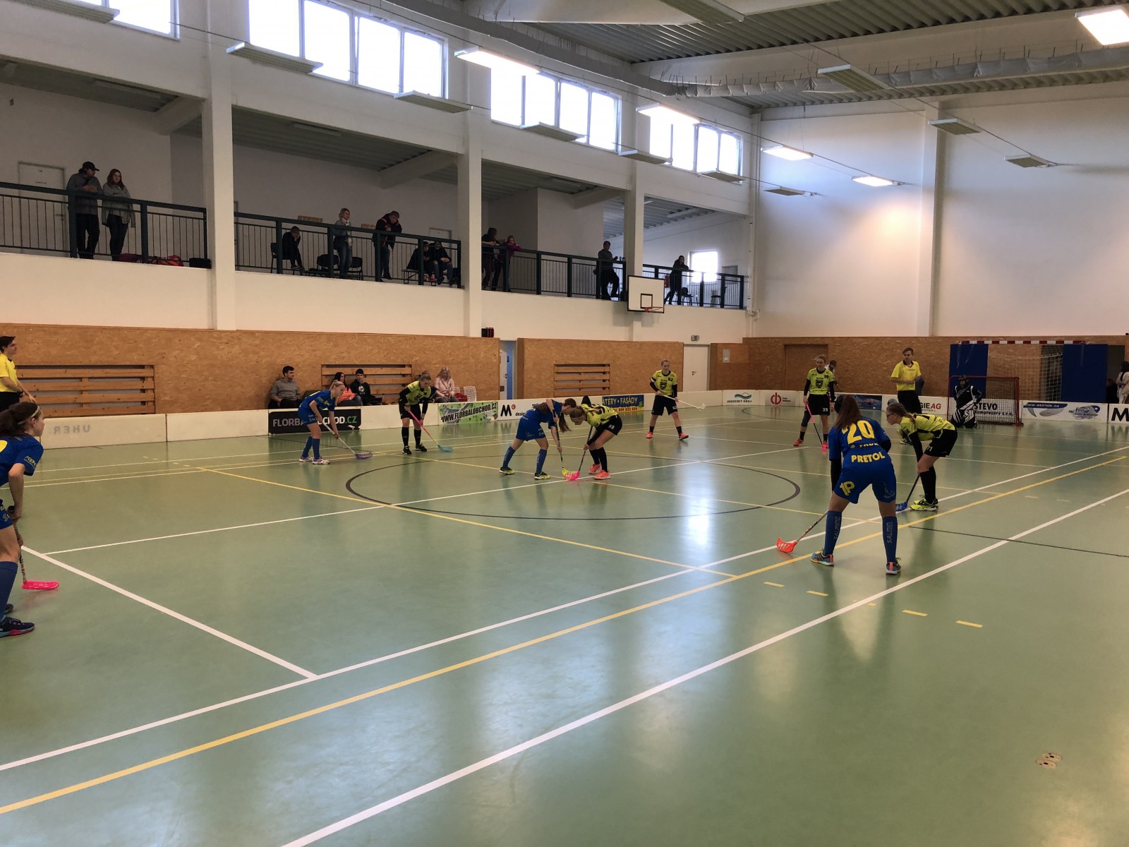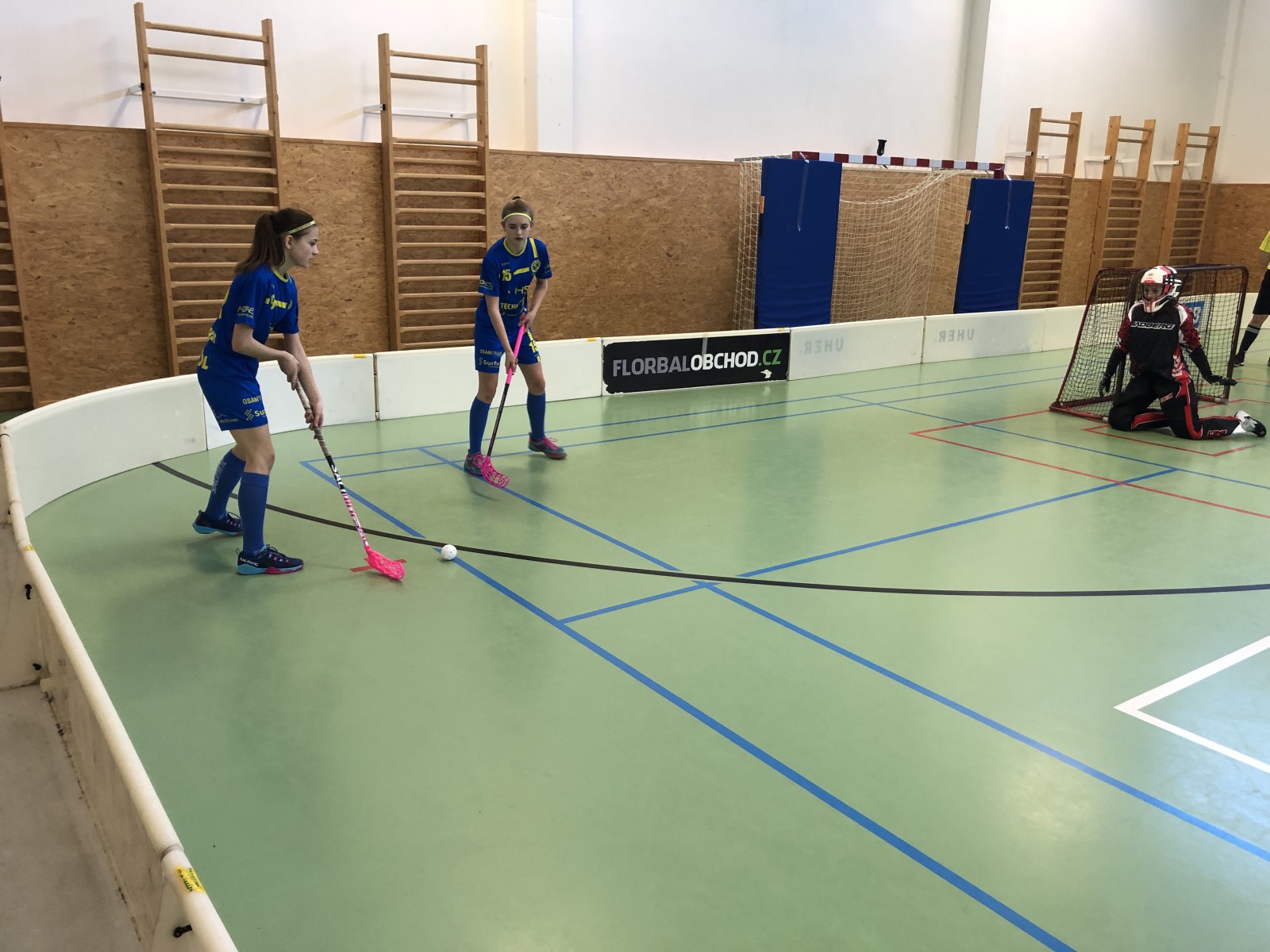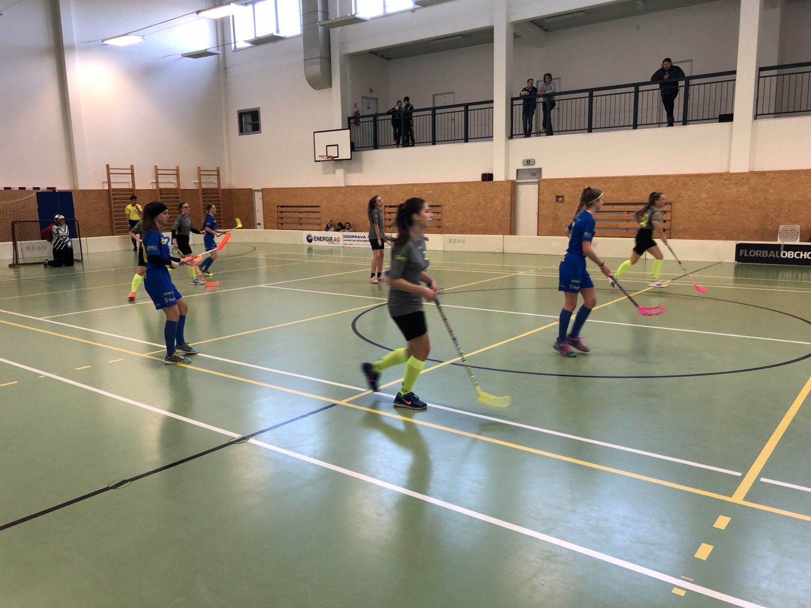 Dle počtu a dovolím si říct i věkové skladby hráček to měl být předem rozhodnutý zápas. Nicméně zápas to byl opět vyrovnaný, jen nás zle potrápila produktivita. Díky tomu jsme v úvodu druhé třetiny prohrávali 1:3, ale pak přišel velký obrat na 4:3. Na začátku třetí třetiny přišel rozhodující moment utkání. Pro trojnásobném faulu soupeře (tři sekery v řadě) na Sáru soupeř získal míč a vstřelil gól. Reakci rozhodčího nechám na konec článku. Pak hra pokračovala naprosto vyrovnaně, ale štěstí opět nebylo na naší straně, když 16 vteřin před koncem soupeř dal rozhodující gól. Opět jsme prohrály nejtěsneji o jeden gól po velmi bojovném a houževnatém výkonu. Konečný výsledek 4:5.
