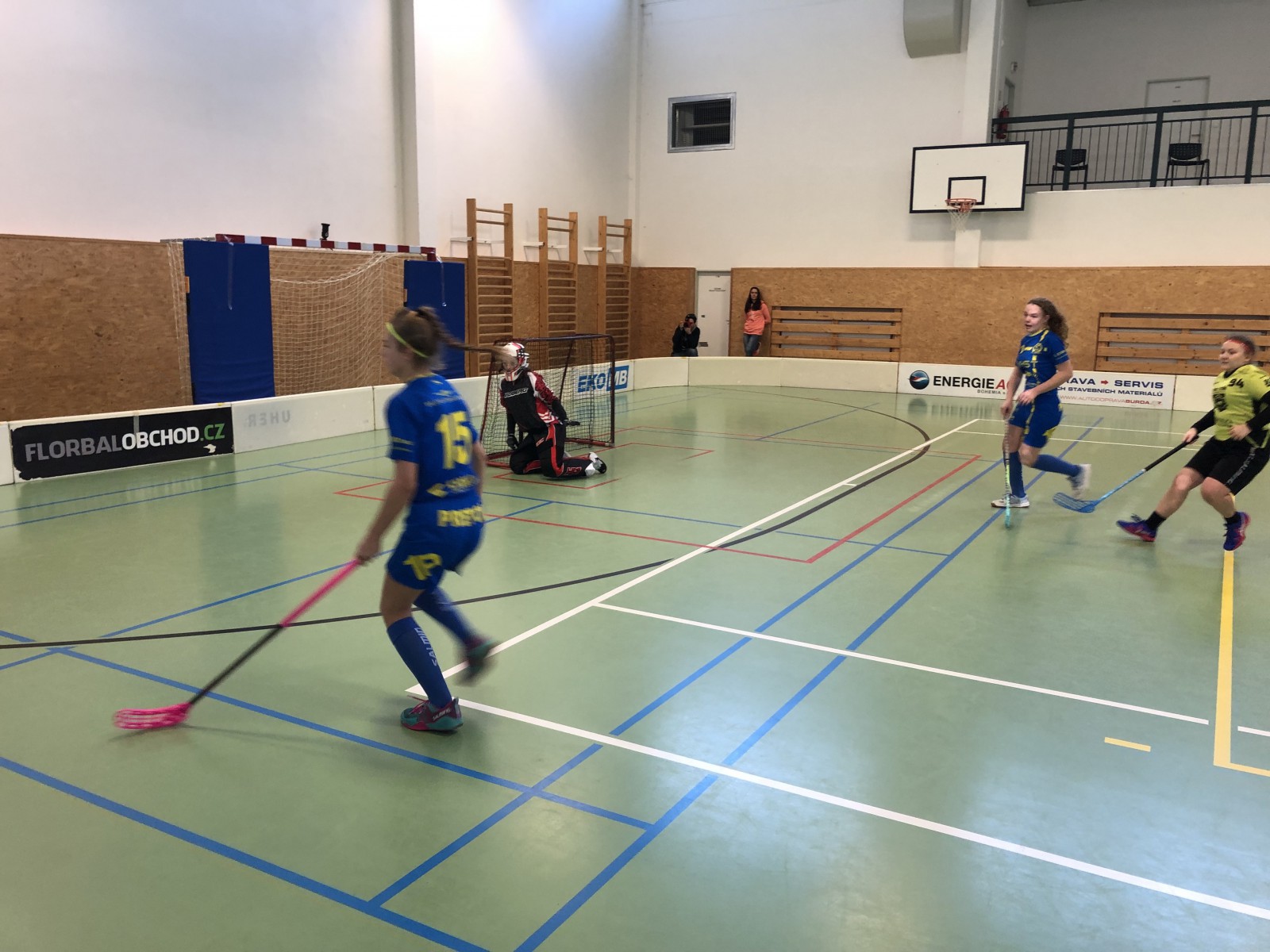 Čekali nás velmi těžcí a početní soupeři - Sklo Bohemia Světlá nad Sázavou a FBC Štíři České Budějovice. Ještě v pátek jsem tajně doufal, že nás pojede 9+1 a tím konečně v ůtoku budou dvě plné trojky. Ale opět nám štěstí nebylo nakloněno. Ze zdravotních důvodů jsme přišli o Bety v obraně a tak nakonec 8+1. Do sestavy se vrátila po delší pauze Sára a opět nám šla pomoc Zuzka Bendová - florbalový nováček letošní sezóny.
