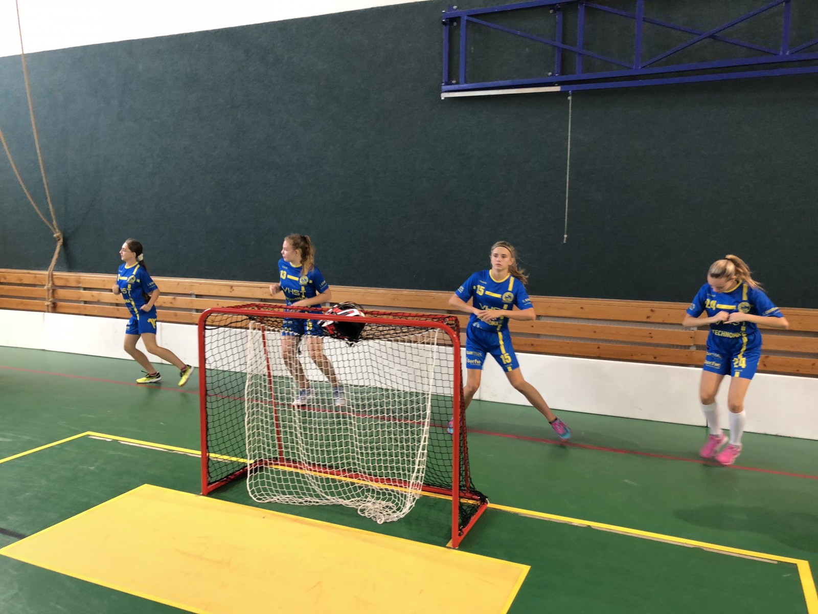 Sice jsme ani jeden zápas nevyhrály dle skóre nijak přesvědčivě, ale 6 bodů jsme získali. A to v počtu, kdy pravděpodobnost na vítězství byla minimální. Sedm z osmi holek přísluší věkově do kategorie starších žákyň, pouze Štěpka v brance je prává dorostenka. Proti nám v obou týmech stáli holky rok či dva starší. A když to připočteme převahu v počtu, tak se opravdu jednalo skvělý výkon. Všechny holky hrály výborně a na maximum a Štěpka v brance nám dávala jistotu a klid v krizových situacích. Už jsme si u ní navykly na její vynikající výkony, kterými deptá soupeře.