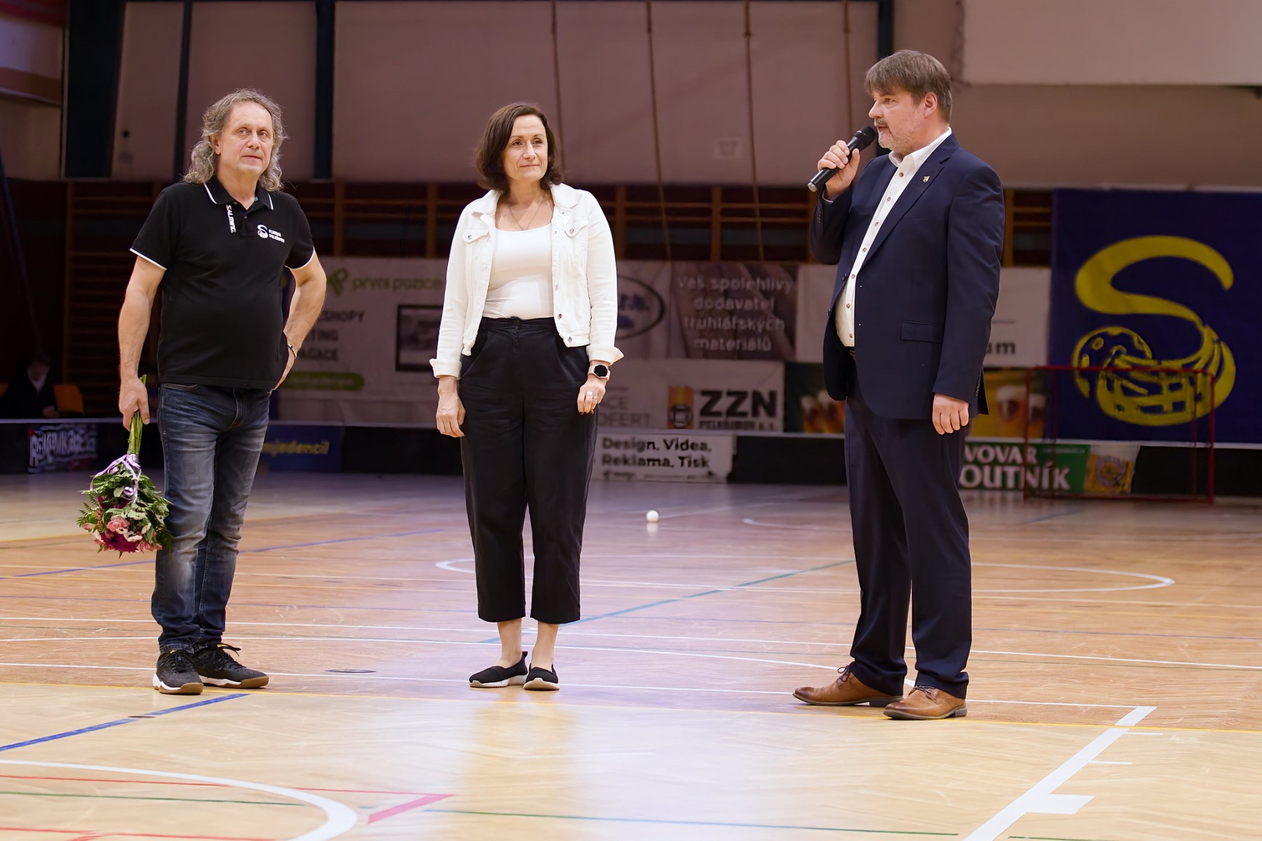 O první přestávce utkání Národní ligy mezi Pelhřimovem a Litomyšlí došlo ke slavnostnímu předání LED obrazovky za účasti paní ředitelky Základní školy Pelhřimov, Osvobození 1881 Mgr. Šárky Třískové, vedoucího odboru školství, kultury a tělovýchovy města Pelhřimova Ing. Zbyňka Rycheckého a předsedy oddílu florbalu Spartak Pelhřimov Mgr. Jiřího Kučery.